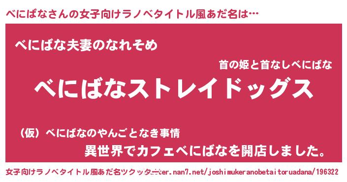 | 男性向けラノベタイトル風あだ名 | 『Re:べにばなから始める異世界生活』 |