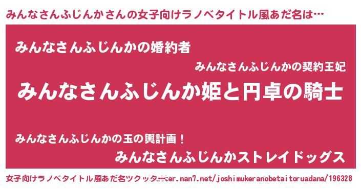 | 男性向けラノベタイトル風あだ名 | 『みんなさんふじんかの憂鬱』 |