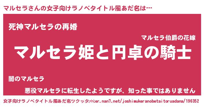 | 男性向けラノベタイトル風あだ名 | 『マルセラアートオンライン』 |