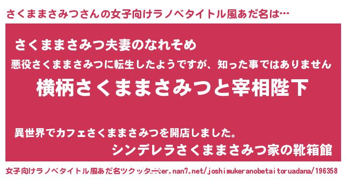 | 男性向けラノベタイトル風あだ名 | 『さくままさみつに滅ぼされるだけの簡単なお仕事です』 |