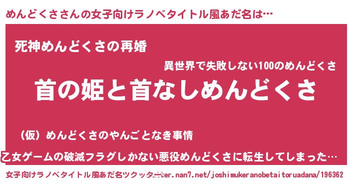 | 男性向けラノベタイトル風あだ名 | 『はたらくめんどくささま!』 |