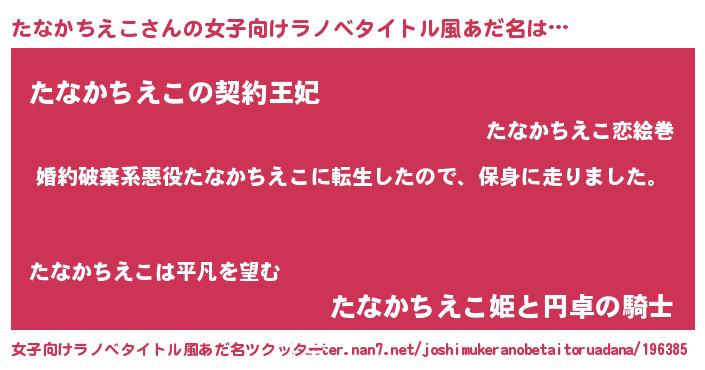 | 男性向けラノベタイトル風あだ名 | 『転生したらたなかちえこだった件』 |