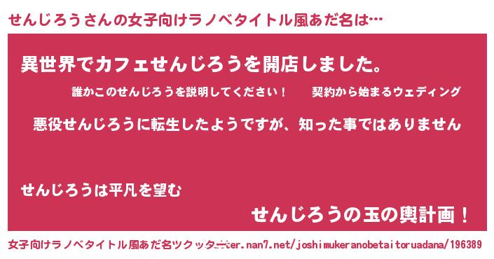 | 萌えアニメ | 物語のオチ『せんじろうさんがダークサイドから帰ってきてヒロインが抱きついてEND』 |
