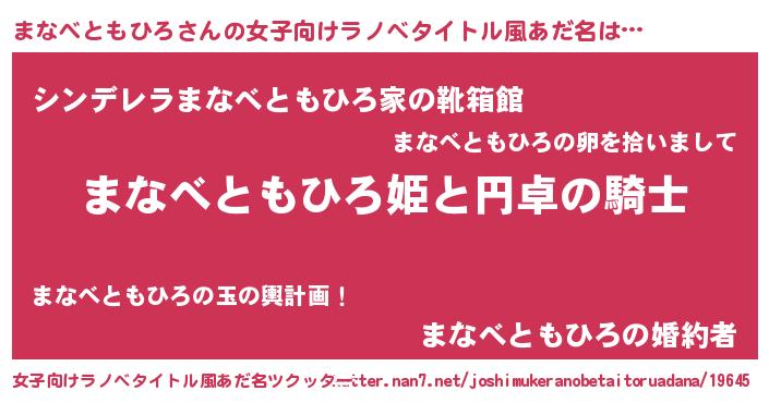 | 男性向けラノベタイトル風あだ名 | 『まなべともひろの憂鬱』 |