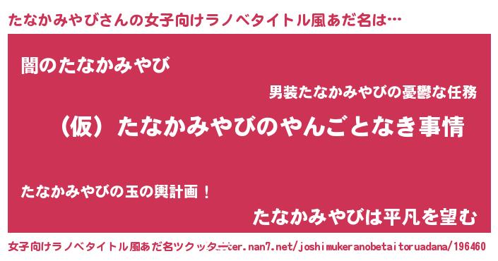 | 男性向けラノベタイトル風あだ名 | 『たなかみやびの憂鬱』 |