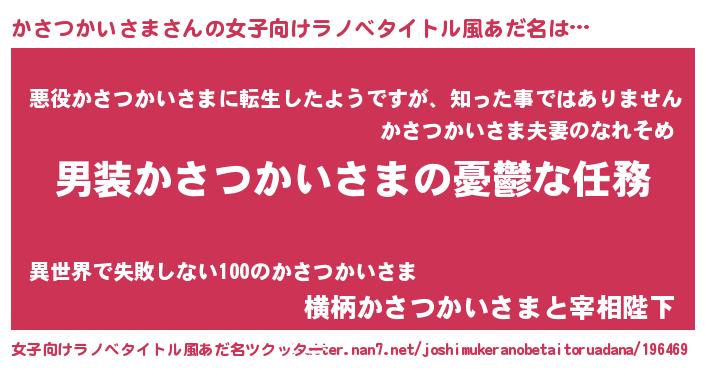| 男性向けラノベタイトル風あだ名 | 『うちのかさつかいさまが世界を掌握している!』 |