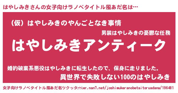 | 男性向けラノベタイトル風あだ名 | 『魔法科高校のはやしみき』 |