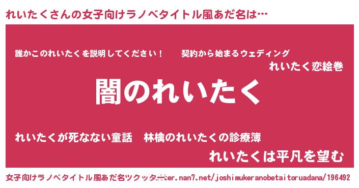 | 男性向けラノベタイトル風あだ名 | 『Re:れいたくから始める異世界生活』 |