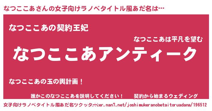 | 意味不明あだ名 | 『自称なつここあ』『永久保存なつここあ』 |