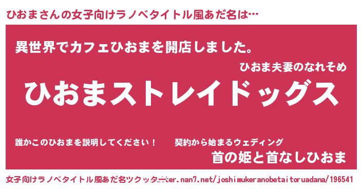 | 男性向けラノベタイトル風あだ名 | 『Re:ひおまから始める異世界生活』 |