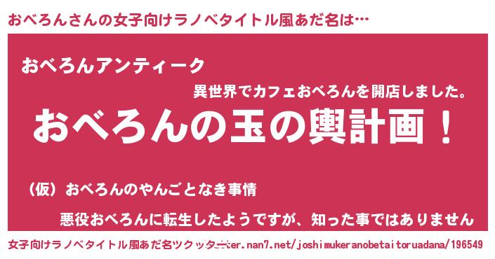 | 男性向けラノベタイトル風あだ名 | 『転生したらおべろんだった件』 |