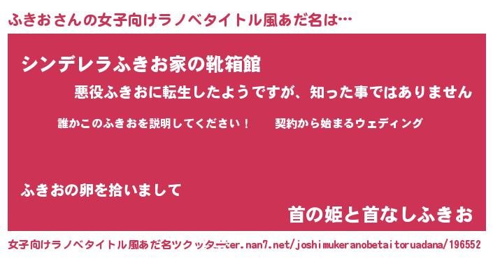 | 男性向けラノベタイトル風あだ名 | 『フキオアートオンライン』 |