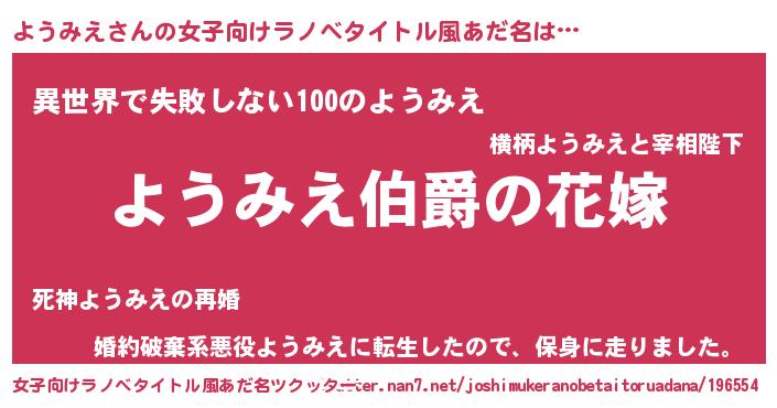| ファンタジー風あだ名 | 『エターナルヨウミエー』『クインヨット』 |
