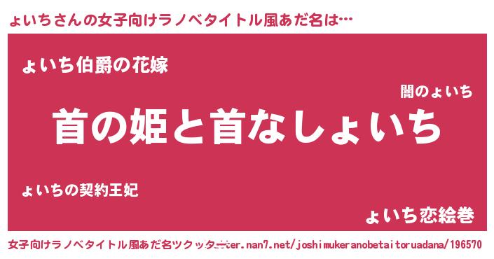 | ポケモン風あだ名 | 『ョイゴンZ』『ョイチダネ』 |
