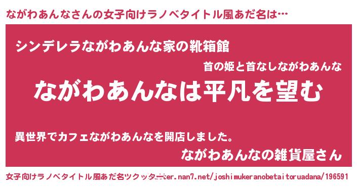 | 男性向けラノベタイトル風あだ名 | 『ダンジョンにながわあんなを求めるのは間違っているだろうか』 |