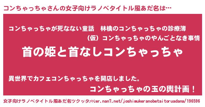 | 男性向けラノベタイトル風あだ名 | 『はたらくコンちゃっちゃさま!』 |