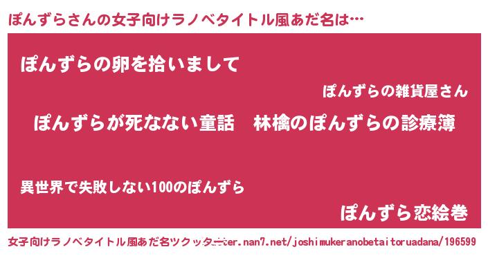 | 男性向けラノベタイトル風あだ名 | 『魔弾の王とぽんずら』 |