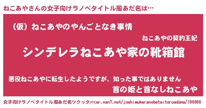 | ヘコむあだ名 | 『ねこもー』『ねこあや(小並感)』 |