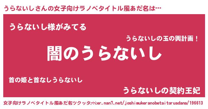| 男性向けラノベタイトル風あだ名 | 『Re:うらないしから始める異世界生活』 |
