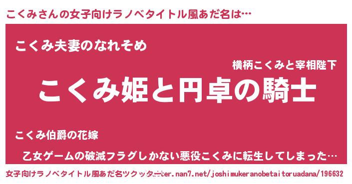 | 男性向けラノベタイトル風あだ名 | 『こくみの憂鬱』『魔弾の王とこくみ』 |