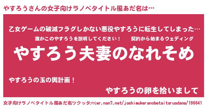 | 胡散臭い通販商品みたいなあだ名 | 『100人中100人が認めたマグネット磁石…その名も「やすろう」』 |