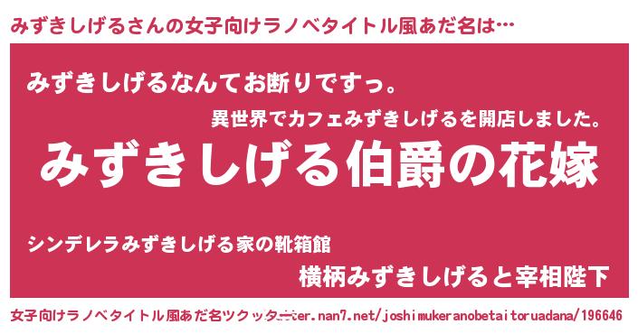 | ファンタジー風あだ名 | 『エターナルミズキシゲルー』 |