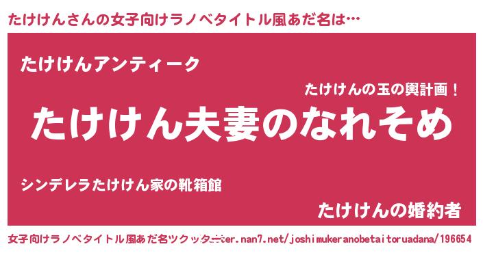 | 男性向けラノベタイトル風あだ名 | 『おまえをオタクにしてやるから、俺をたけけんにしてくれ! 』 |