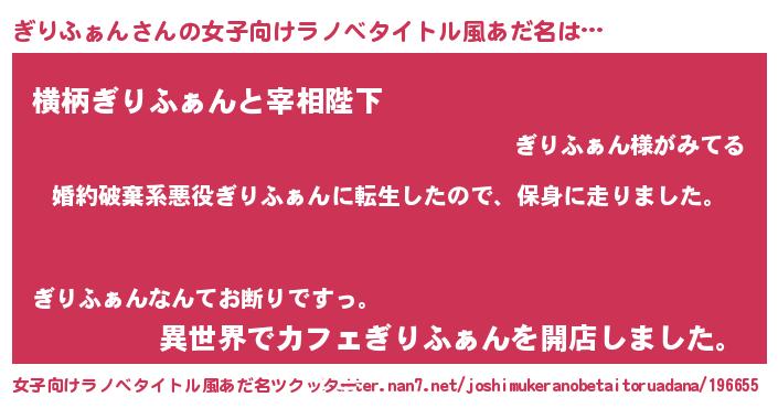 | 男性向けラノベタイトル風あだ名 | 『ギリファンスレイヤー』 |