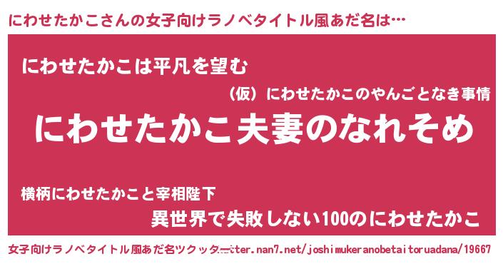 | ポケモン風あだ名 | 『ニックウザ』『ヒニワセタカコ』 |