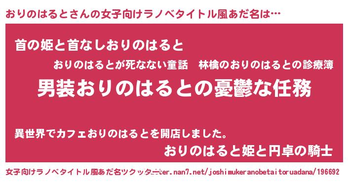 | 胡散臭い通販商品みたいなあだ名 | 『億万長者になれる霊験あらたかなお札…その名も「おりのはると」』 |