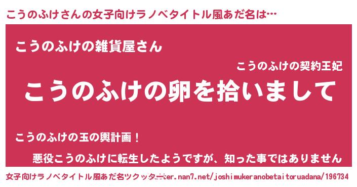 | 男性向けラノベタイトル風あだ名 | 『ダンジョンにこうのふけを求めるのは間違っているだろうか』 |