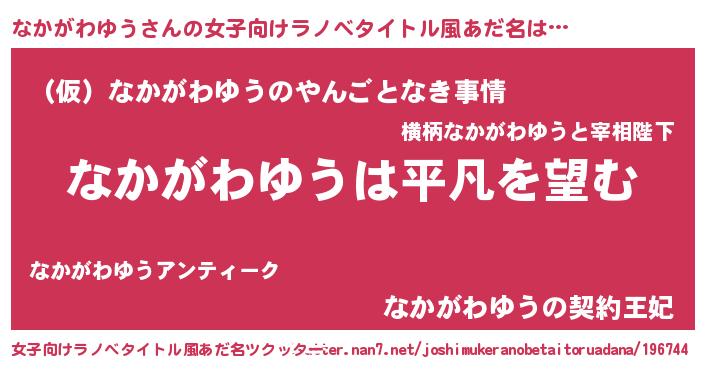 | 肩書あだ名 | 『なかがわゆう塾長』『なかがわゆう社長』 |