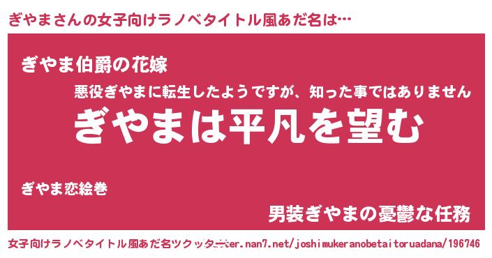 | 自動車の名前っぽいあだ名 | 『ギルトヤパン』『ギスラー』 |