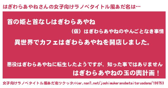 | ヘコむあだ名 | 『はぎわらあやね(笑)』『はぎにゅー』 |