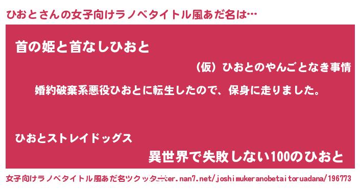 | 男性向けラノベタイトル風あだ名 | 『転生したらひおとだった件』 |