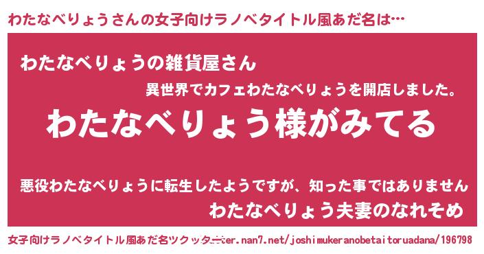 | 男性向けラノベタイトル風あだ名 | 『わたなべりょうの嫁は女の子じゃないと思った?』 |