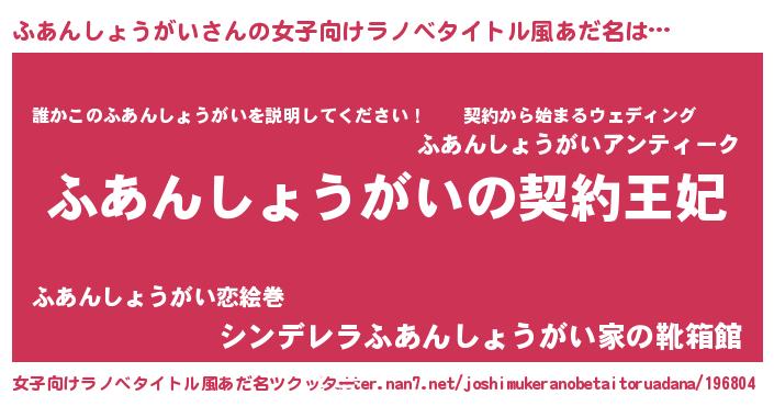| ヘコむあだ名 | 『ふあんしょうがい(遠い目)』『ふあ太郎』 |