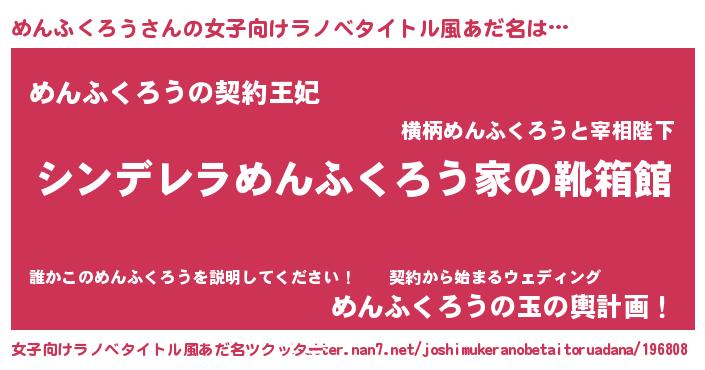 | ヘコむあだ名 | 『めんふくろう(小並感)』『めんにー』 |