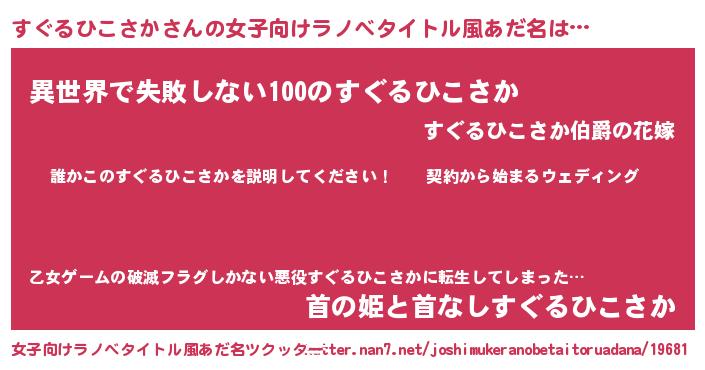 | 男性向けラノベタイトル風あだ名 | 『スグルヒコサカアートオンライン』 |