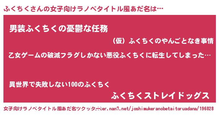 | ヘコむあだ名 | 『ふくふぇ~』『ふくちく(遠い目)』 |