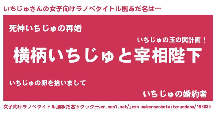 | 男性向けラノベタイトル風あだ名 | 『いちじゅに滅ぼされるだけの簡単なお仕事です』 |