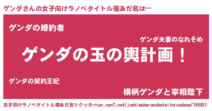 | 胡散臭い通販商品みたいなあだ名 | 『運命の人と巡り会える高級そうな壺…その名も「ゲンダ」』 |