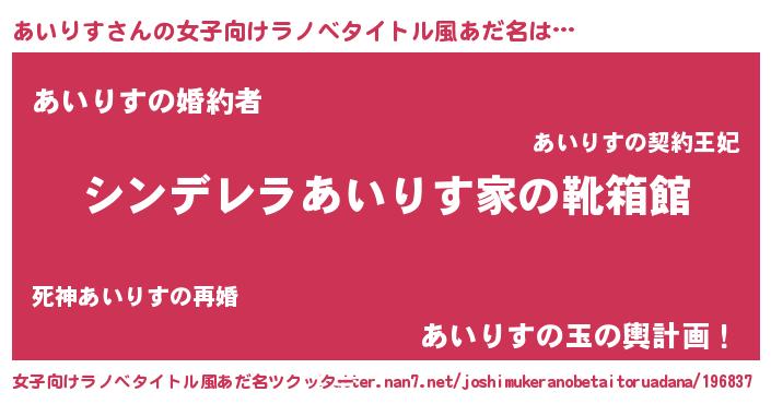 | 意味不明あだ名 | 『あいりすフォーエバー』『自称あいりす』 |