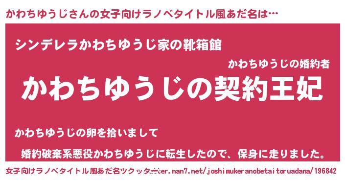 | 男性向けラノベタイトル風あだ名 | 『誰もが恐れるあのかわちゆうじが、ぼくの専属メイドになるようです。』 |