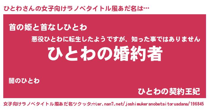 | 胡散臭い通販商品みたいなあだ名 | 『運命の人と巡り会える高級そうな壺…その名も「ひとわ」』 |