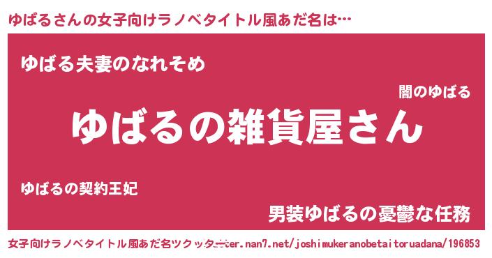 | 男性向けラノベタイトル風あだ名 | 『やはりゆばるの青春ラブコメはまちがっている 』 |