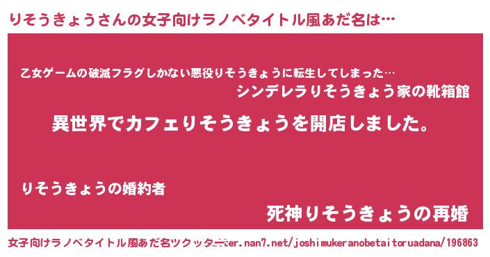 | ヒーロー風カッコイイあだ名 | 『ネオリソウキョウ』『仮面リソダー』 |
