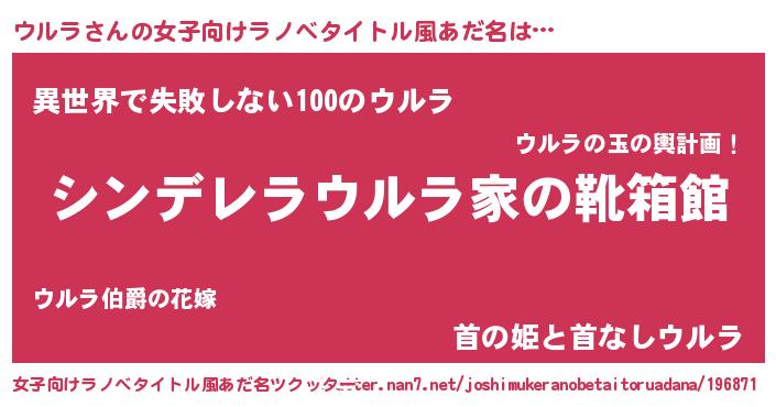 | 男性向けラノベタイトル風あだ名 | 『緋弾のウルラ』『はたらくウルラさま!』 |