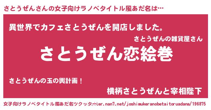 | 男性向けラノベタイトル風あだ名 | 『おまえをオタクにしてやるから、俺をさとうぜんにしてくれ! 』 |