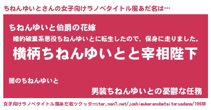 | 男性向けラノベタイトル風あだ名 | 『ちねんゆいとに滅ぼされるだけの簡単なお仕事です』 |